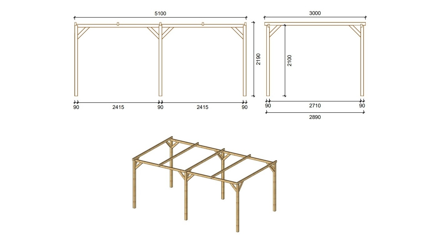 La tettoia in legno per auto ombreggiante per parcheggi CAR1 con larghezza 3 m, profondità 5.1 m e altezza di passaggio 2.1 m. può essere utilizzato come copertura per auto o, ad esempio, come copertura per terrazzo. Il prodotto è facile da montare, le istruzioni di montaggio sono incluse nel set.