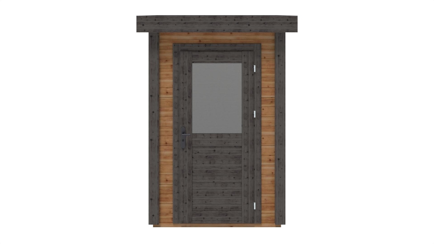Le foto mostrano una casetta in legno 000010 con una superficie di 2.53m2, una larghezza frontale di 1.59m e una profondità di 1.59m.