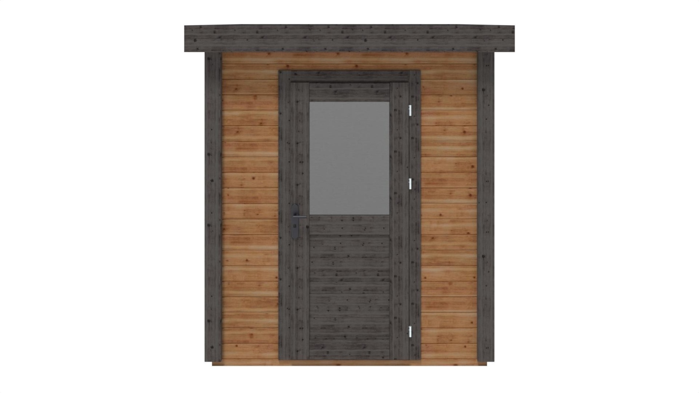 Le foto mostrano una casetta in legno 000016 con una superficie di 5.41m2, una larghezza frontale di 2.09m e una profondità di 2.59m.