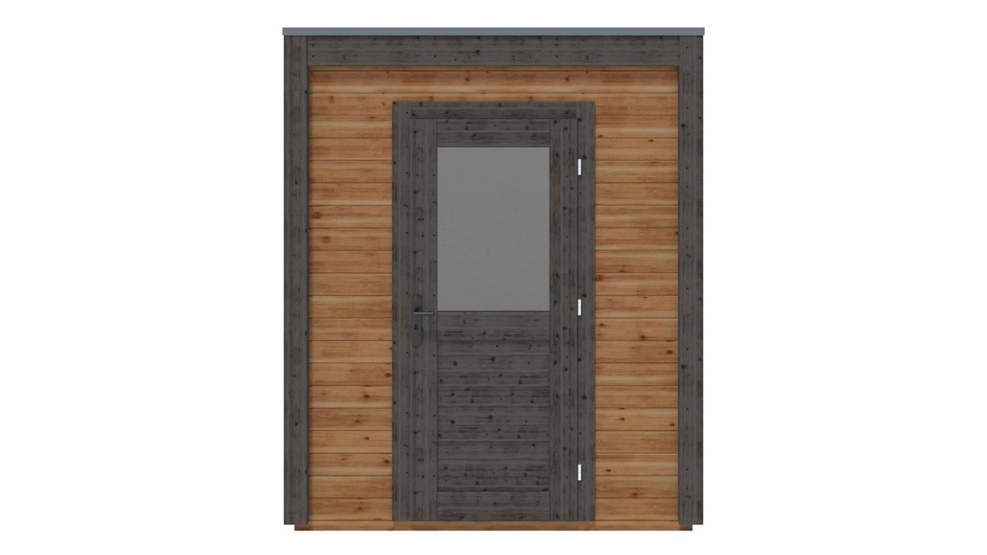 Le foto mostrano una casetta in legno 000064 con una superficie di 4.37m2, una larghezza frontale di 2.09m e una profondità di 2.09m.