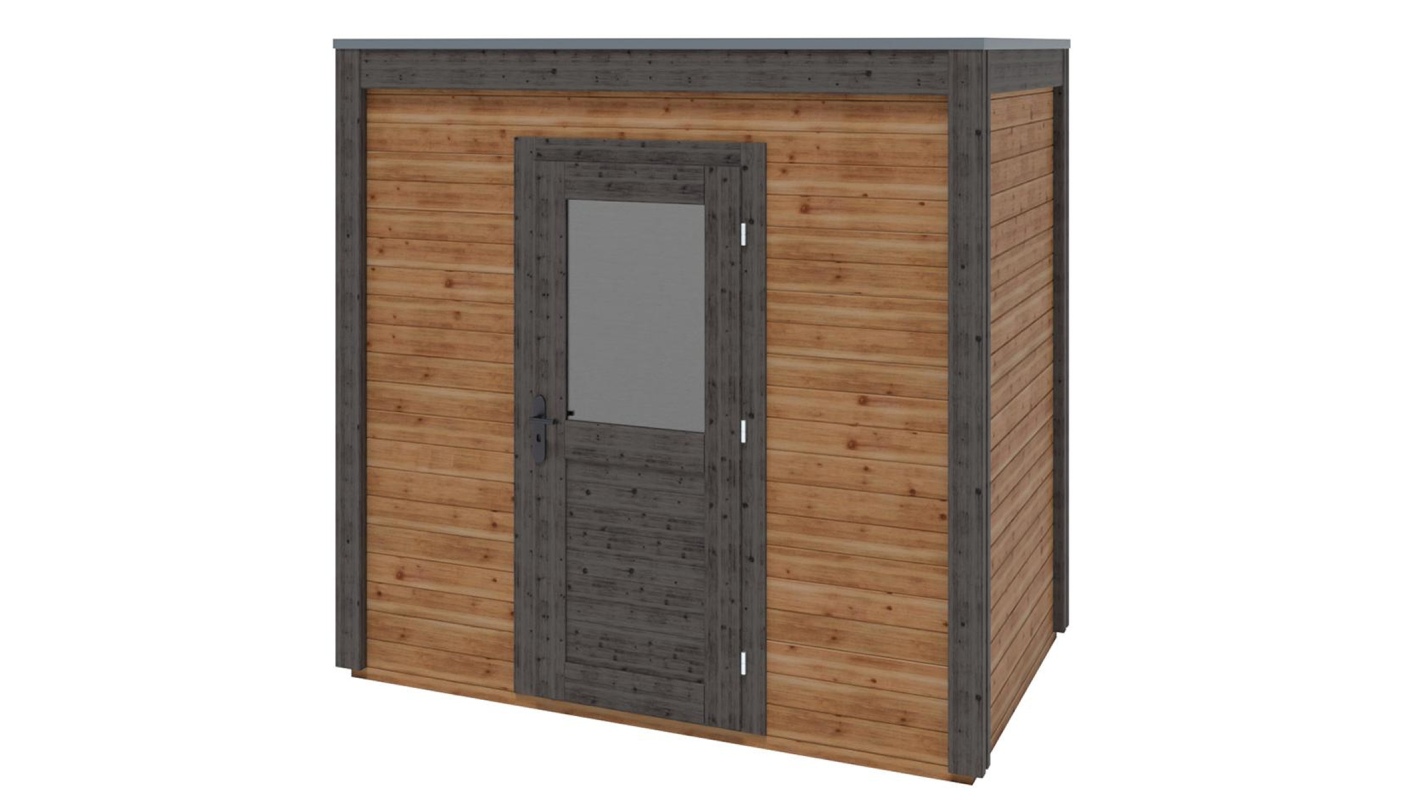 Le foto mostrano una casetta in legno 000067 con una superficie di 4.12m2, una larghezza frontale di 2.59m e una profondità di 1.59m.
