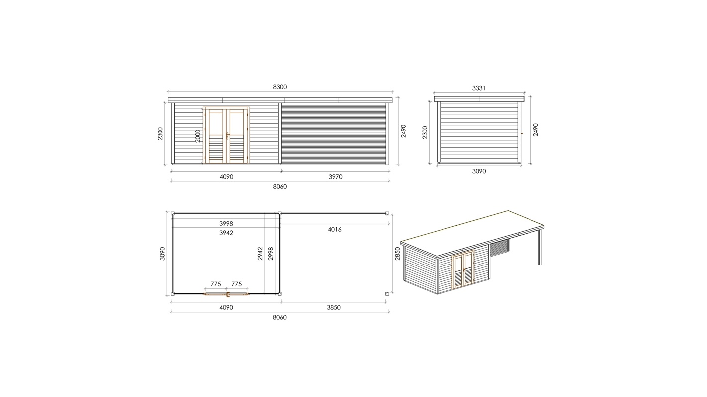 La casetta da giardino in legno 000156 c’è il luogo idealo per la rilassamento ed il giocco della tutta familia. La casetta è fatta del legno di alta qualità. Fa 7.06m in larghezza e 3.09m in profondità.