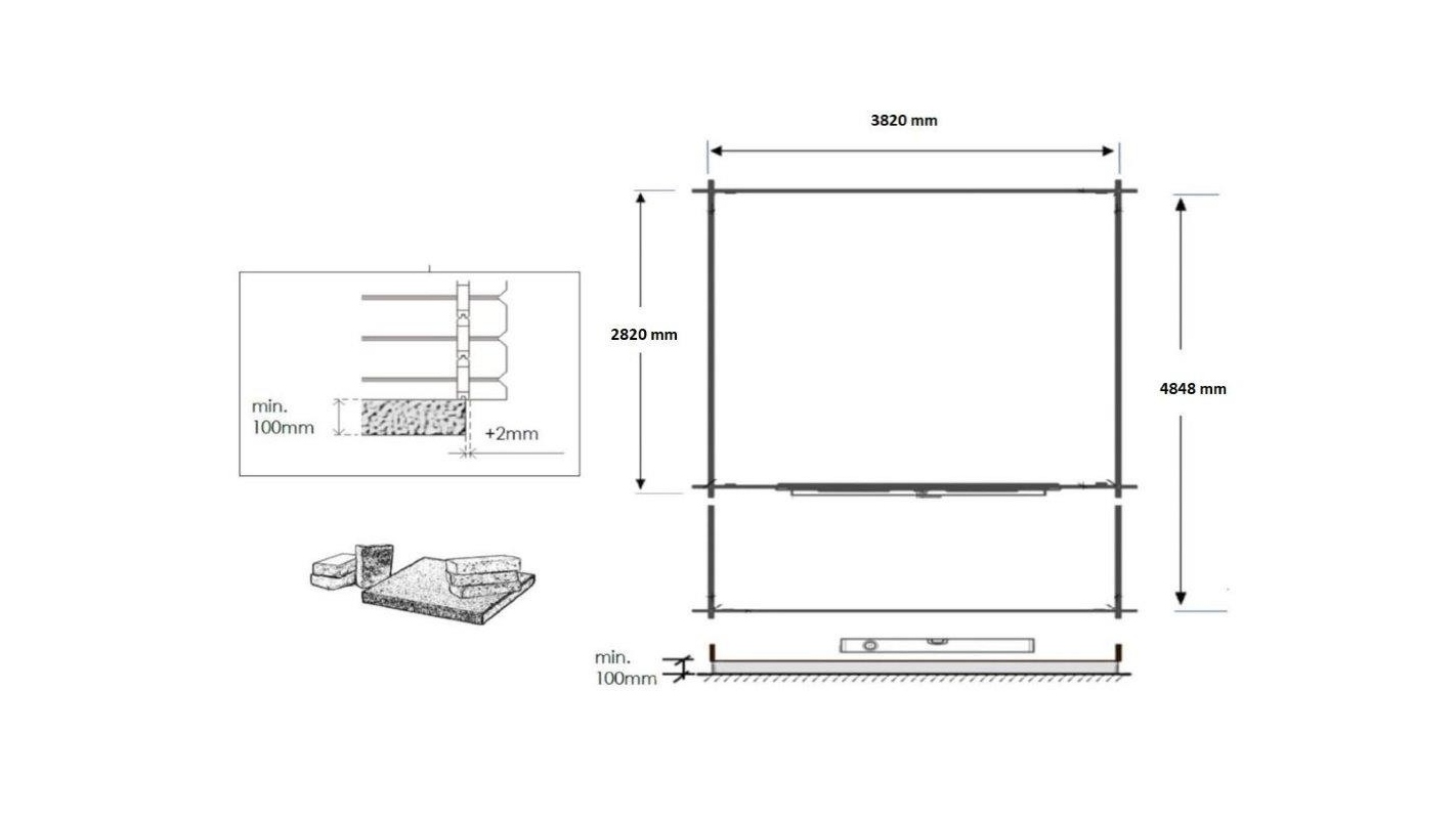 Le foto mostrano una casetta in legno DOM595+DOM78+DOM79+POD05 con una superficie di 20m2, una larghezza frontale di 4m e una profondità di 3m.