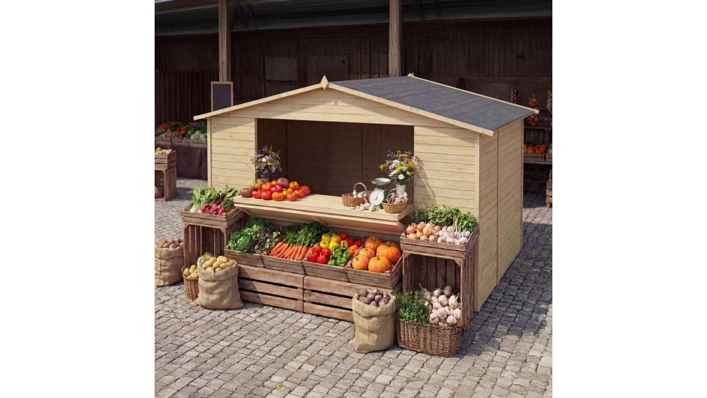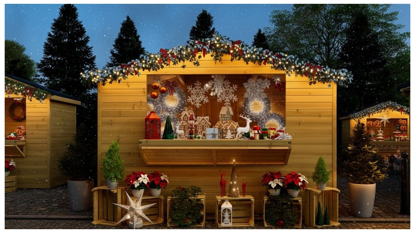 CHIOSCO PER MERCATINI IN LEGNO DOM606 - DUREVOLE NEL TEMPO, PRODOTTO PRATICO, NON IMPREGNATO