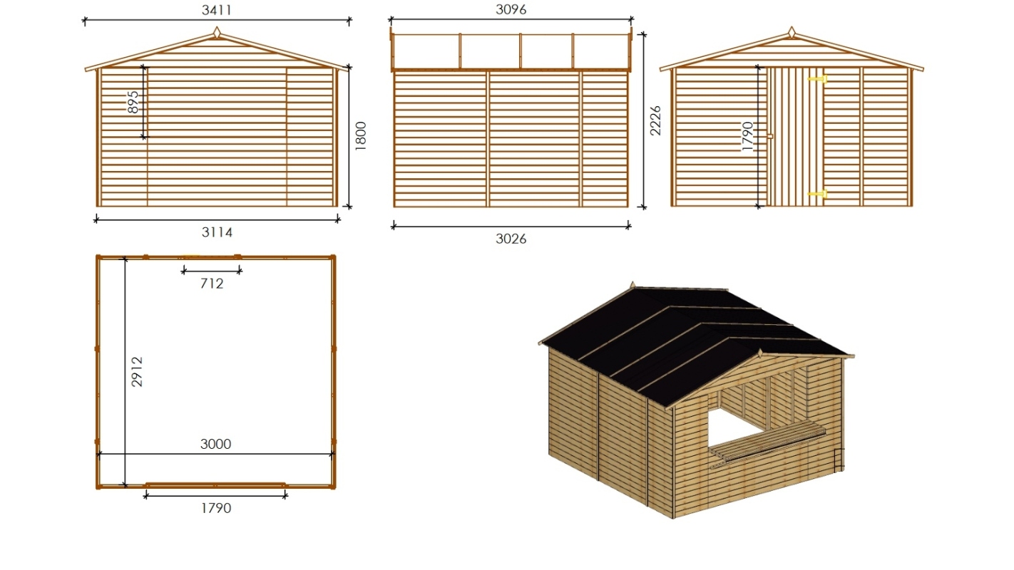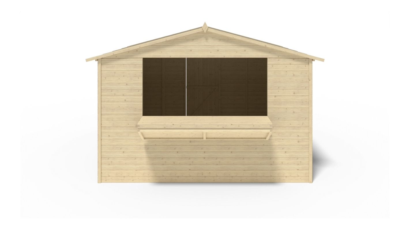Chiosco per mercatini in legno DOM607 superficie 9.42 m2, larghezza anteriore 3.11 m, profondità 3.03 m con spessore delle parete 19 mm. L'installazione dello chiosco con le istruzioni allegate al prodotto non presenta grossi problemi.