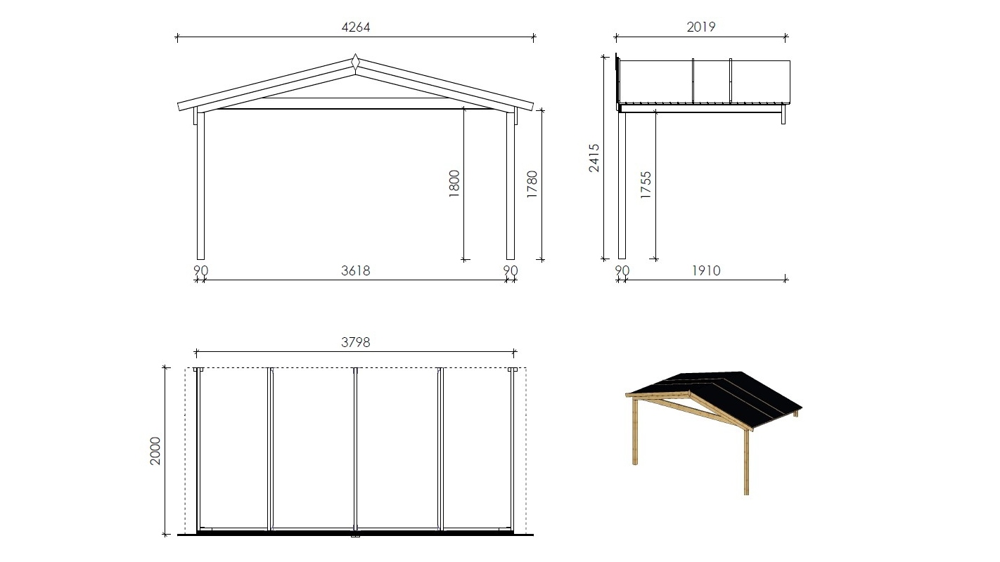 - Spessore dei pali (mm): 90x90