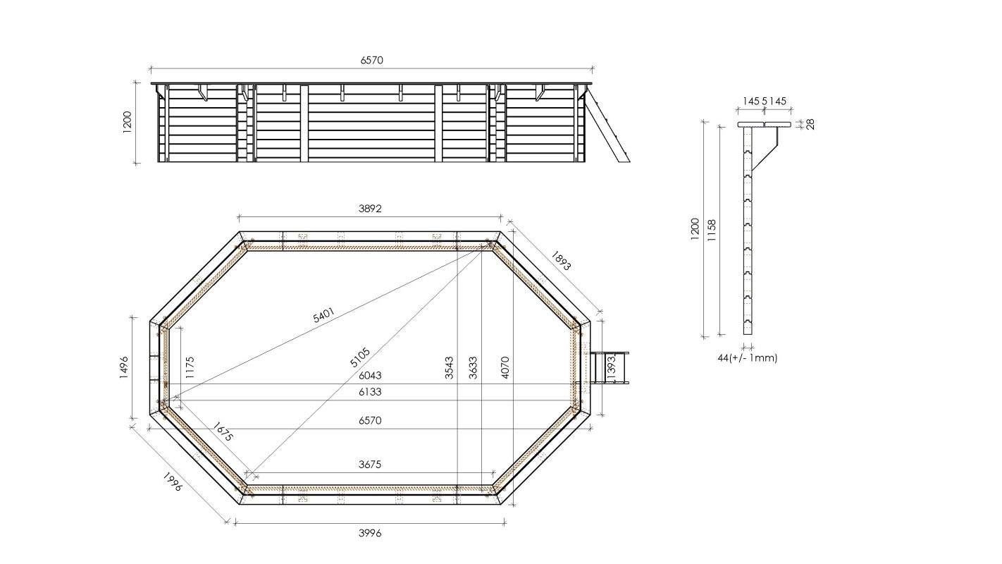 Scopri una piscina che unisce la bellezza naturale del legno, la stabilità della struttura e la sicurezza d’uso.Il modello di piscina con dimensioni 6.57 × 4.07 m e altezza 1.2 m è stato progettato per consentire a tutta la famiglia di godere comodamente del refrigerio nelle calde giornate estive.