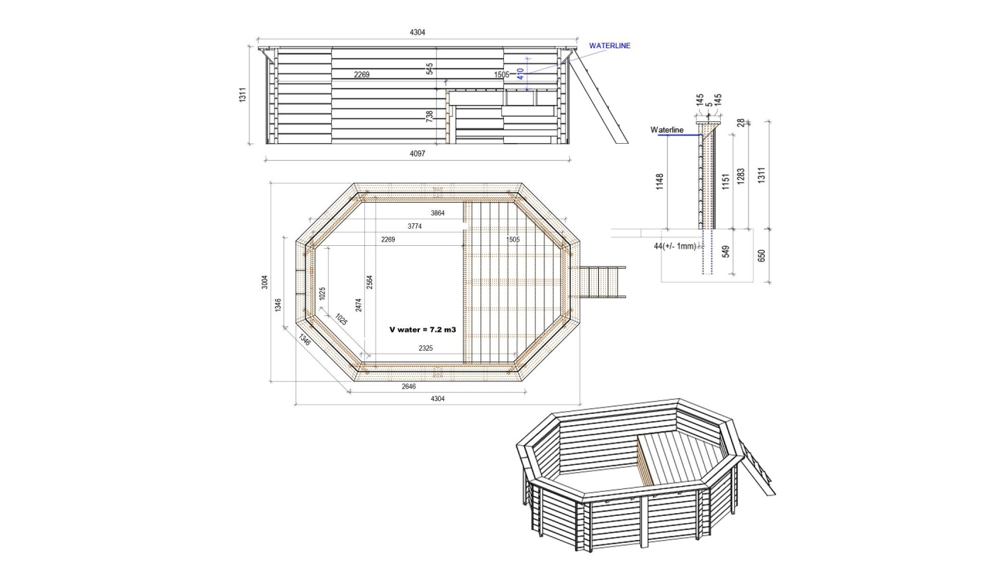 Scopri una piscina che unisce la bellezza naturale del legno, la stabilità della struttura e una soluzione unica di area relax a profondità ridotta.