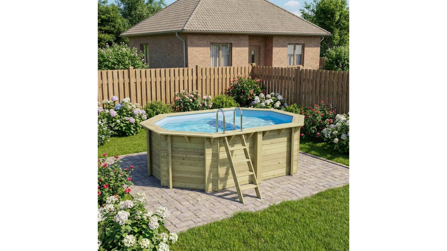 Il legno dona all’ambiente un carattere elegante e accogliente, e il suo aspetto classico permette alla piscina di integrarsi in qualsiasi tipo di giardino. È possibile aggiungere terrazze in legno, piante o illuminazione decorativa per creare uno spazio davvero suggestivo.