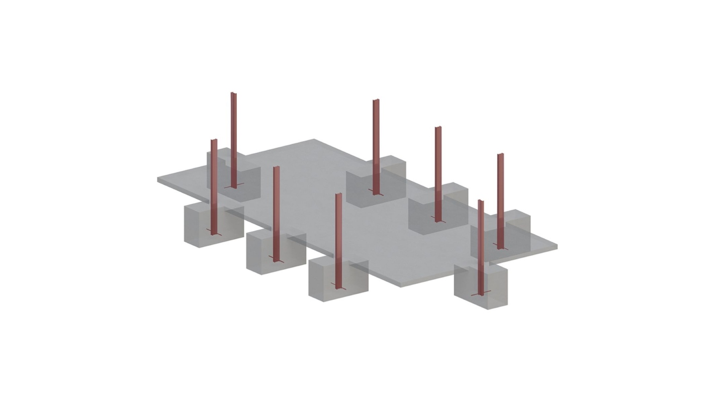• i supporti in acciaio diventano parte integrante delle fondamenta,