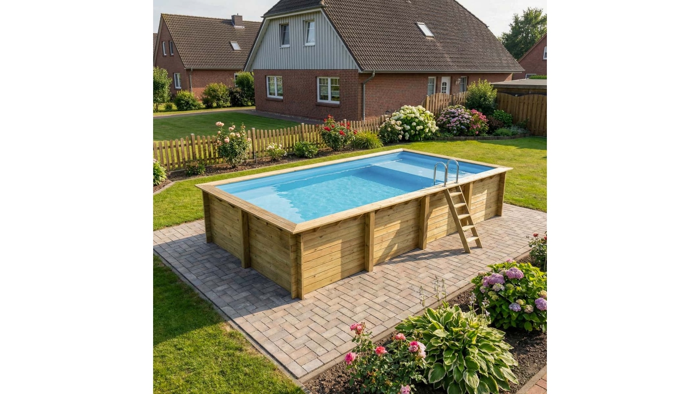 Il legno dona all’ambiente un carattere elegante e accogliente, e il suo aspetto classico permette alla piscina di integrarsi in qualsiasi tipo di giardino. È possibile aggiungere terrazze in legno, piante o illuminazione decorativa per creare uno spazio davvero suggestivo.
