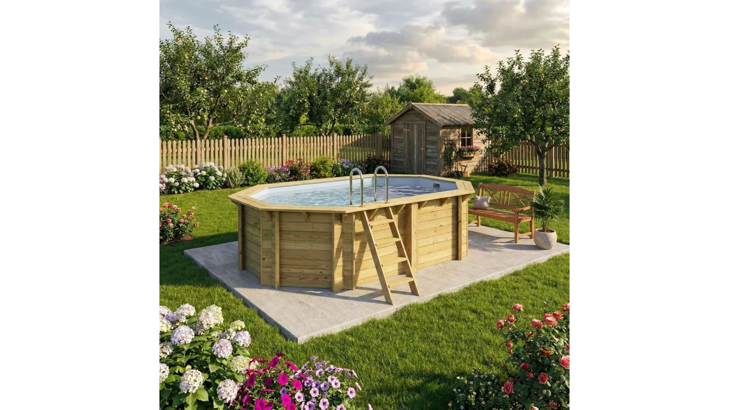Il legno dona all’ambiente un carattere elegante e accogliente, e il suo aspetto classico permette alla piscina di integrarsi in qualsiasi tipo di giardino. È possibile aggiungere terrazze in legno, piante o illuminazione decorativa per creare uno spazio davvero suggestivo.