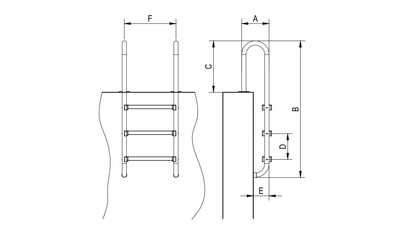 Scaletta per piscina in acciaio inossidabile a 3 gradini. Completa di ancoraggi e piedini.