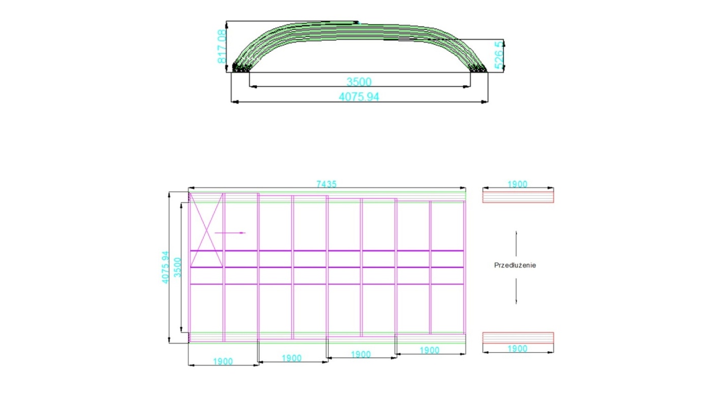 - profilati portanti con la lunghezza del tetto + estensione 1.9 m