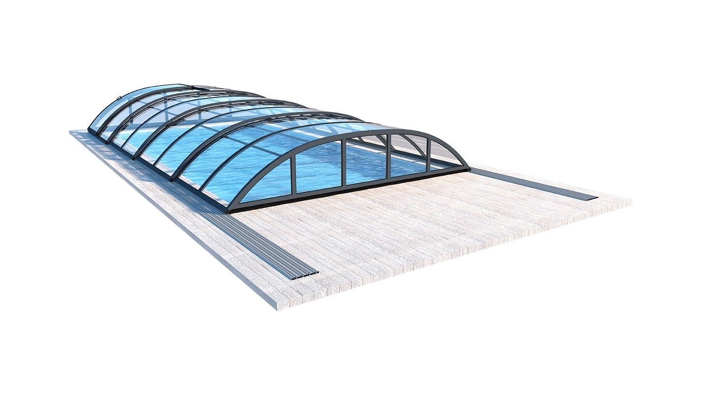 Il materiale utilizzato per creare le coperture telescopiche per piscina offerte è Policarbonato compatto da 3 mm, caratterizzato da un eccellente isolamento. Protegge dalla perdita di calore, che si traduce in un minor consumo di energia necessaria per mantenere la temperatura dell'acqua adeguata. Inoltre, è resistente ai carichi di neve e ghiaccio.