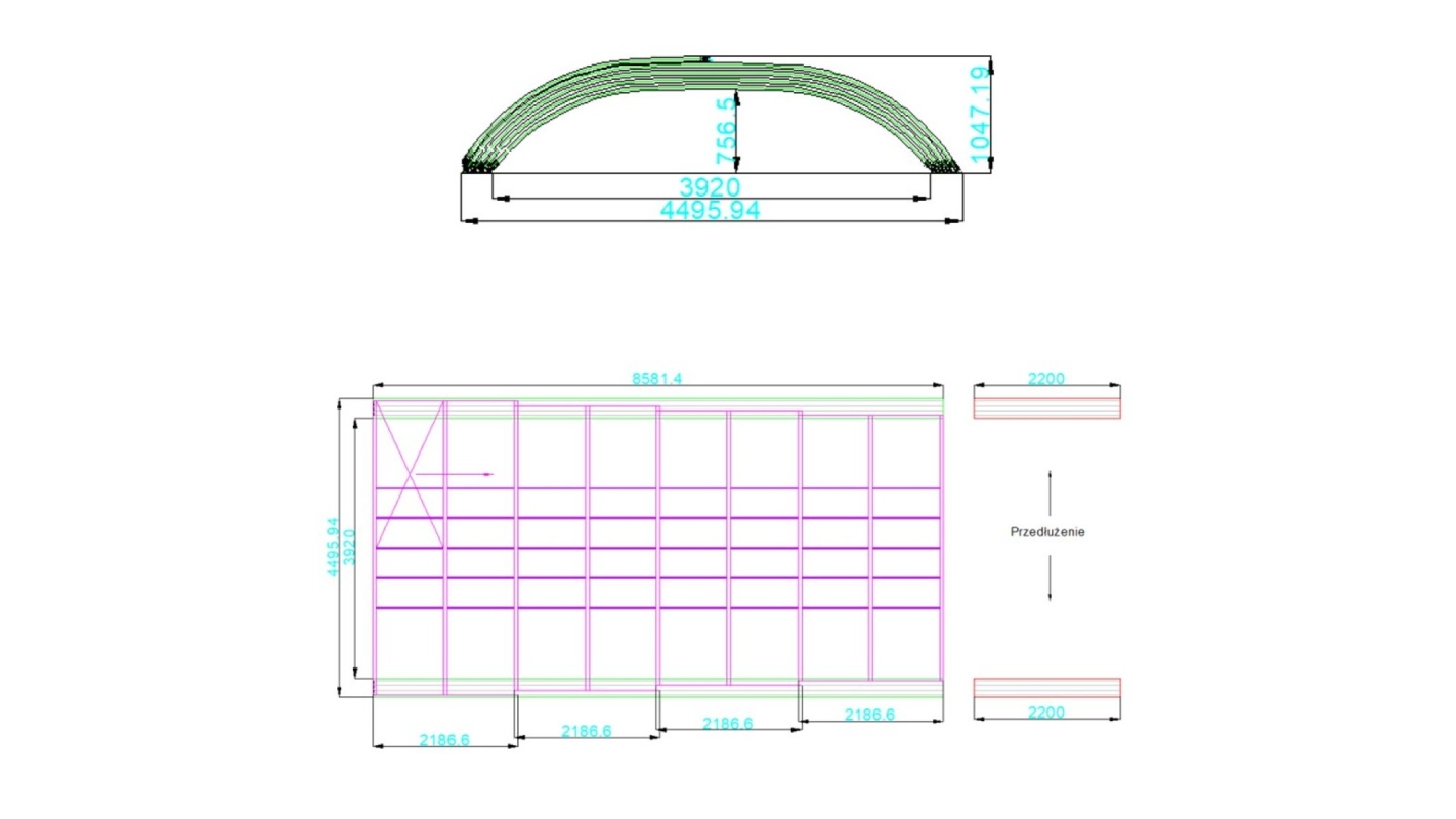 - profilati portanti con la lunghezza del tetto + estensione 2.2 m