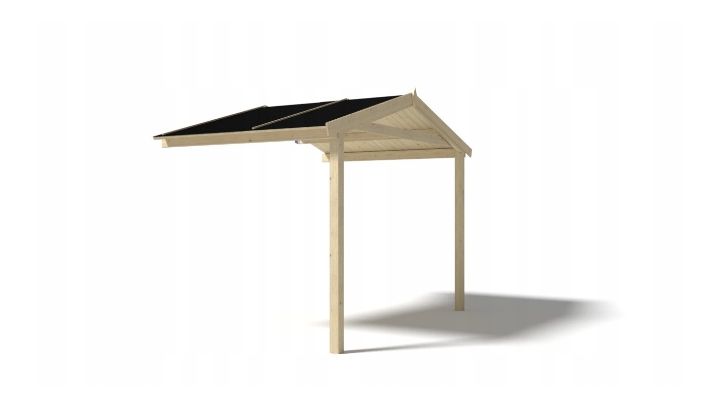 La tettoia corrisponde alle casette da giardino in legno con un tetto a capanna, una larghezza frontale di 3 m e lo spessore di 28 mm, offerte da ALTANKA p.s.a.