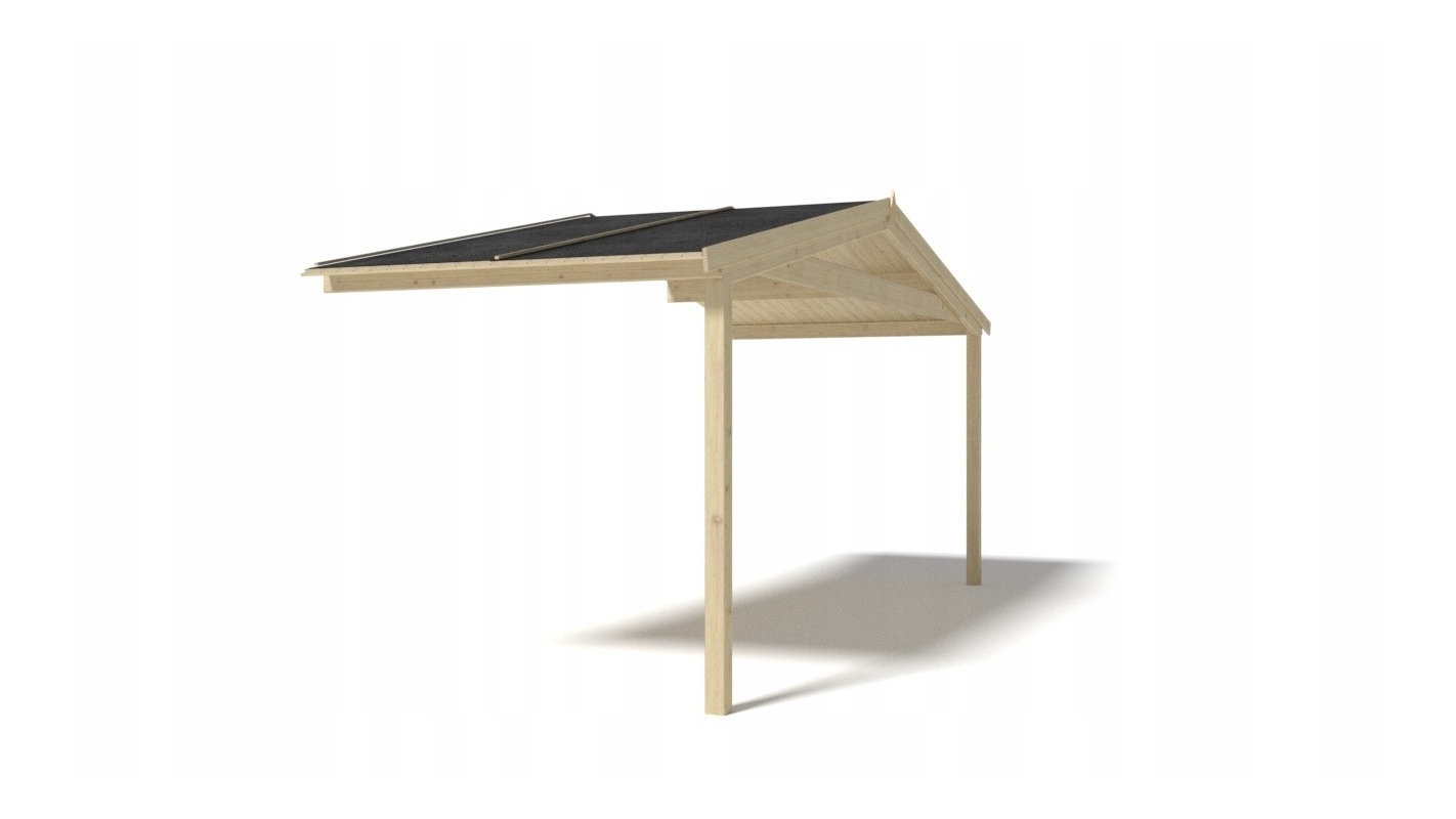 La tettoia corrisponde alle casette da giardino in legno con un tetto a capanna, una larghezza frontale di 5 m e lo spessore di 28 mm, offerte da ALTANKA p.s.a.