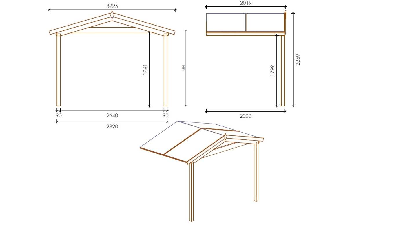 La tettoia corrisponde alle casette da giardino in legno con un tetto a capanna, una larghezza frontale di 3 m e lo spessore di 28 mm, offerte da ALTANKA p.s.a.